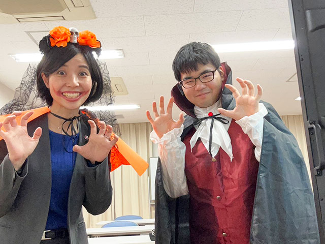 「慶越先生のフェイスメイクと福島先生のヤンキーみたいなパンプキン帽子が印象的でした。」