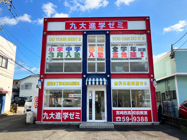 宮崎県から探す 宮崎西高校前教室(旧大塚校) 対象:小1~高3 中学受験 高校受験 大学受験 宮崎市大塚町乱橋4550-5 電話:0985-59-9388 ※受付開始 14:00~ (授業時間等は留守番電話対応となります) お申込みフォーム 宮崎大宮高校前教室 対象:小1~高3 (2026年3月開校) 中学受験 高校受験 大学受験 宮崎市神宮東3-2-28 電話:0985-33-9626 ※受付開始 14:00~ (授業時間等は留守番電話対応となります) お申込みフォーム