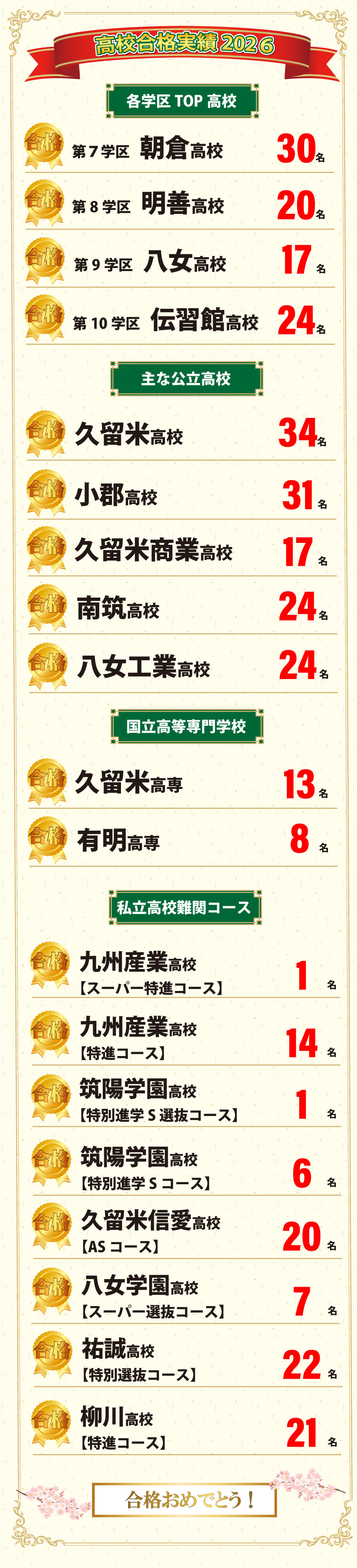 そして今年も筑後地区では、多くの生徒が自分の志望校に挑戦し、その夢をつかみ取りました。
