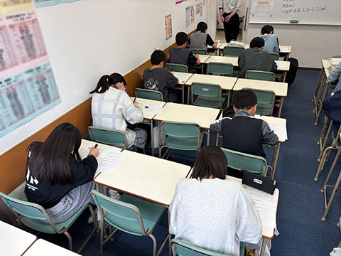 まとめテスト中の中学1年生!先輩たちに負けず、真剣に取り組みます!
