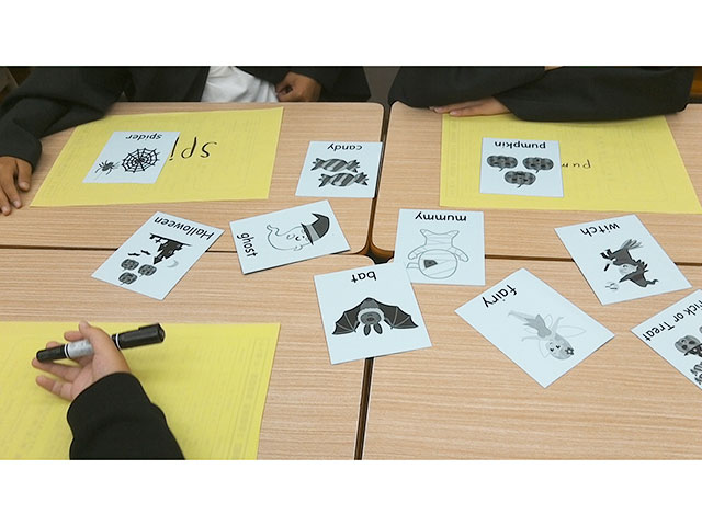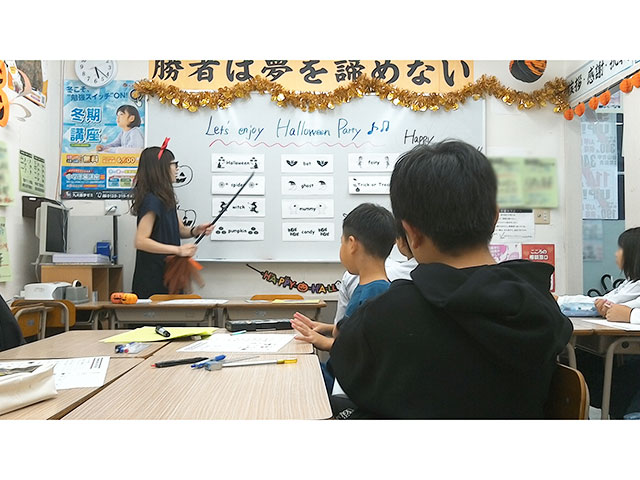 ハロウィンにまつわる単語の発音練習中!元気よく発音できました!