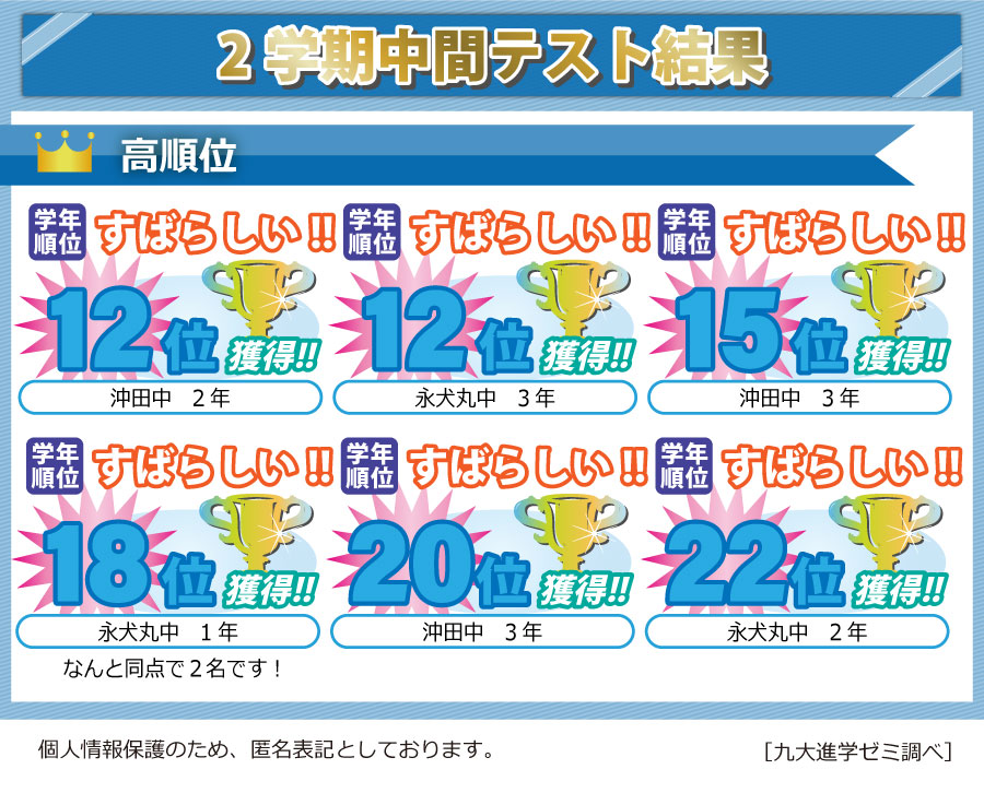 永犬丸校開校から半年、200人以上の学年の1ケタ順位生を輩出できました!