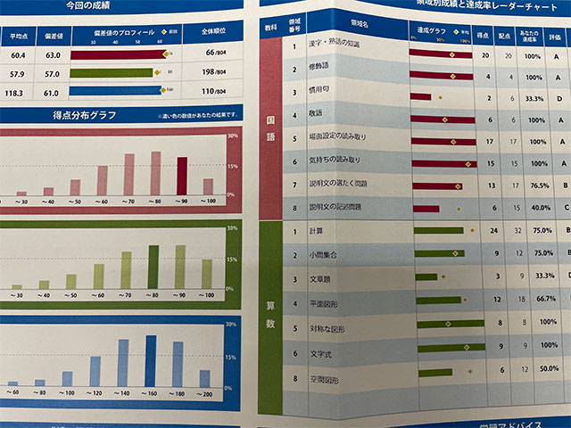 結果を詳細に分析したカルテがあるので、お子さんの得意不得意がわかりやすい!