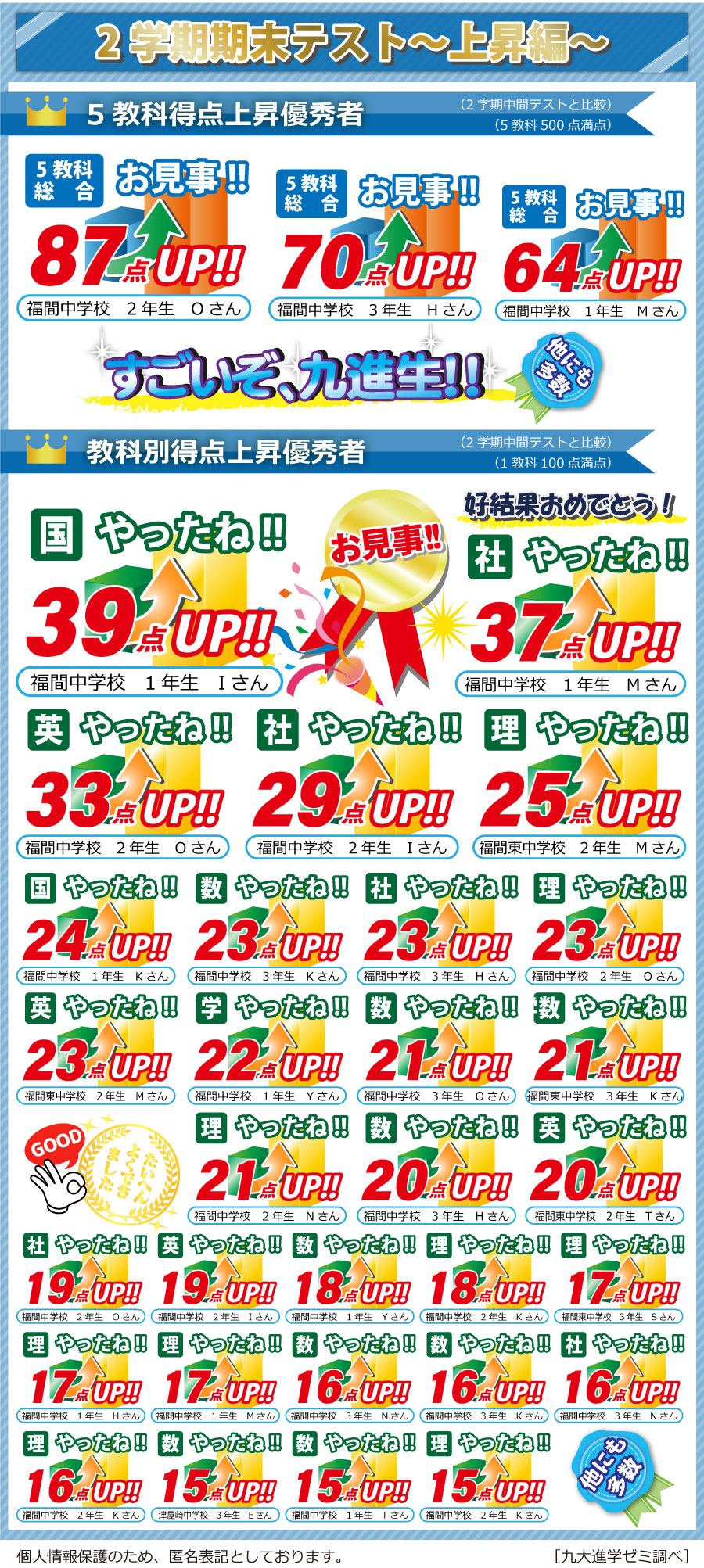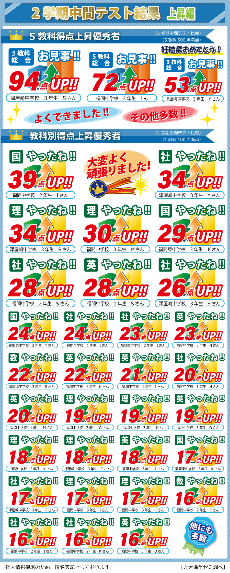 ホーム >  福間校 >  定期テスト結果