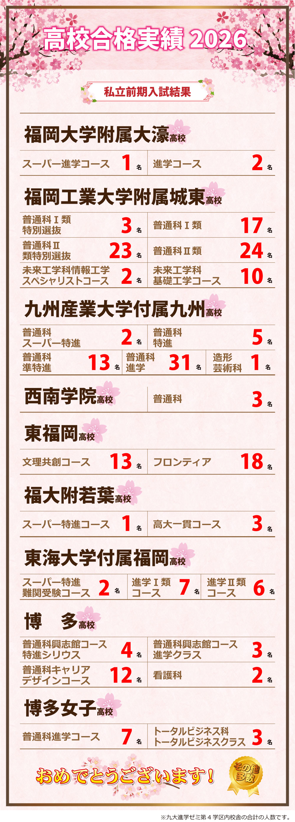 しっかり戦い抜いてきた九進生の結果がこちらです🌸