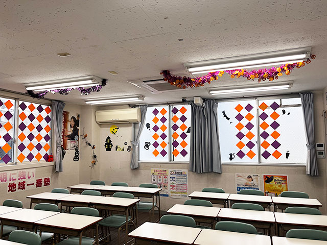 九大進学ゼミ本校の教室がガラッとハロウィン仕様に変わりました!