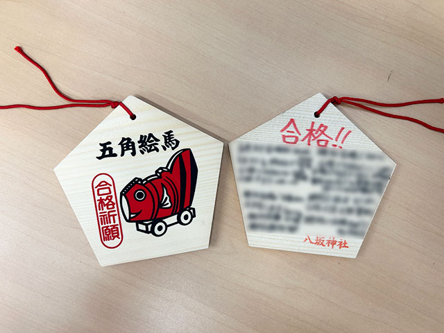 今年の絵馬は五角形!絵馬を見た瞬間、「ごうかっけい!」と読みたくなるほど縁起がいい!と思いました。