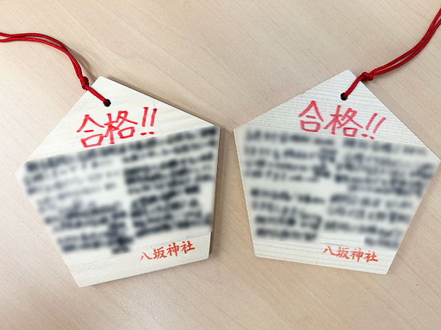 今年の中学3年生も、受験前に、皆で絵馬に願いを込めました。