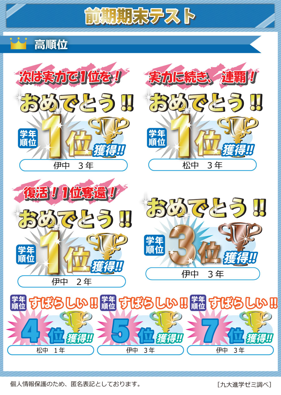 | 伊集院中 | 学年トップ10に九進生が3名ランクイン!Σ(゚Д゚) |