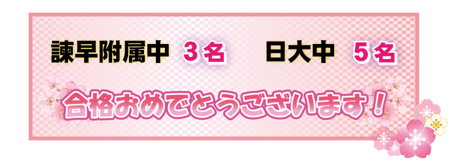 が合格を勝ち取りました。コースの仲間たちと日々切磋琢磨し、励まし合いながら、志望校合格に向かって努力してきた諫早校の子どもたちを誇りに思います。
