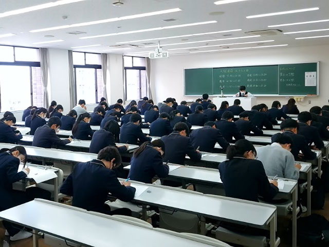 この高校入試直前大テスト会では、生徒たちに入試本番の緊張感を体感してもらうテストです。