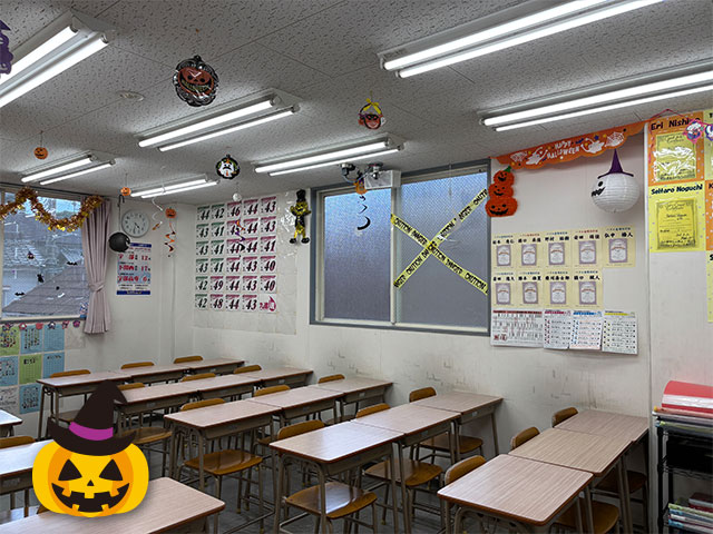 Jr.Englishで使っている教室がハロウィン仕様に…!