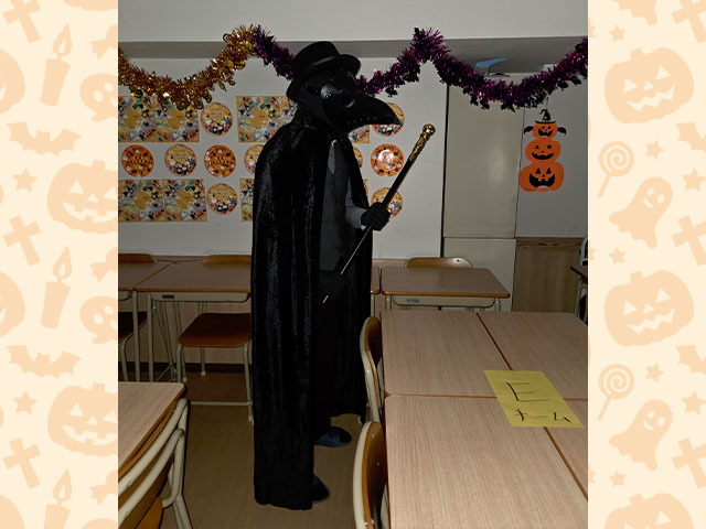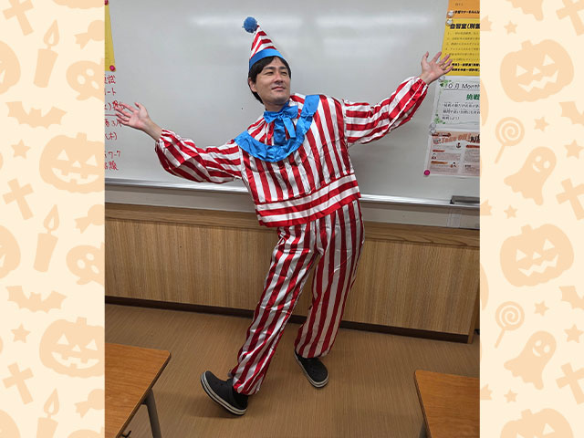 ピエロ?ウォーリー?生徒には中々伝わりませんでしたが何の仮装かわかるかな?