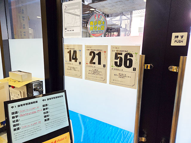 賀茂校では、私立専願入試、公立推薦・特色化選抜入試、公立一般入試まで、残り日数のカウントダウンを掲示しています。