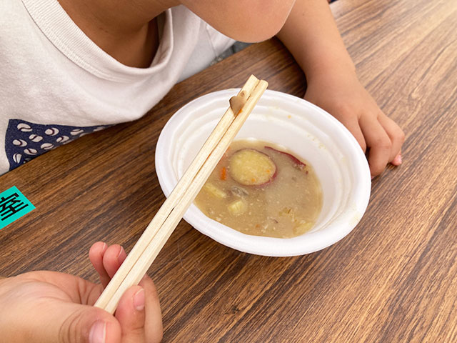 帰りにはお土産とおいしいさつま汁もいただきました。
