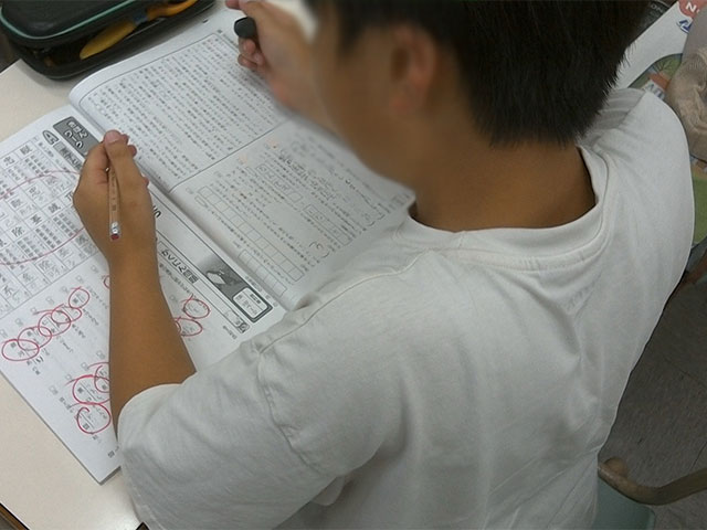 1教室の中に他の学年のお子さんがいることもありますが、それぞれのお子さんの学年に合わせて教科書準拠のテキストを解いていきます。