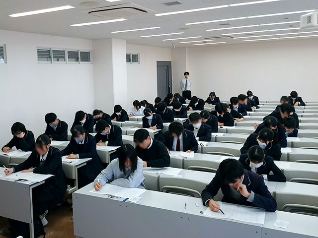 この入試直前大テスト会は、生徒たちに本番同様の緊張感を体感してもらうテストです。