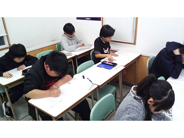 2月14日(土)のテスト当日、子どもたちは日頃の勉強の成果を出そうと、制限時間ギリギリまで問題用紙と向き合いました。