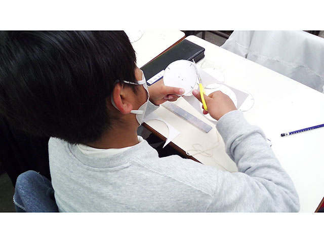 小学3~5年生は、慣性の性質を利用した「ブンブンごま」を作って楽しい時間を過ごしました(※小6は英語のテストを実施)。