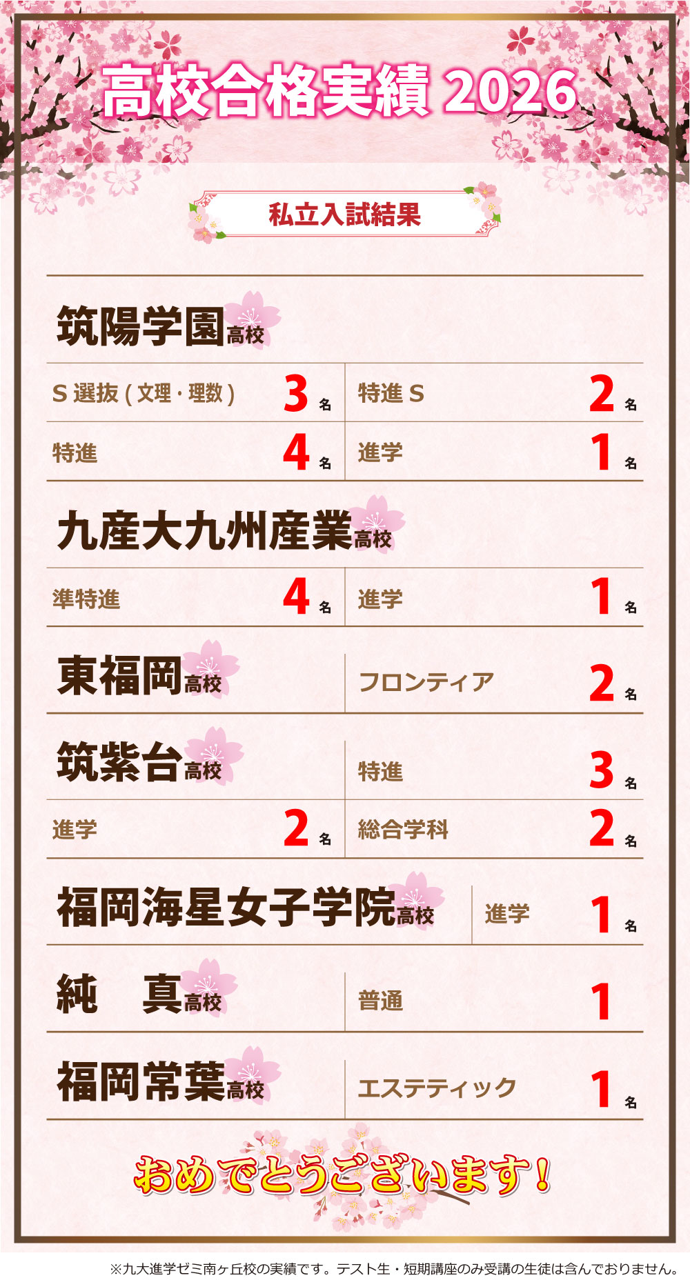 努力を積み重ねてきた生徒たちが、それぞれ私立の志望校でしっかり結果をつかみ取ってくれました。
