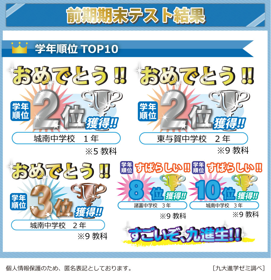 今回は「学年順位TOP10」にランクインした生徒を発表します!