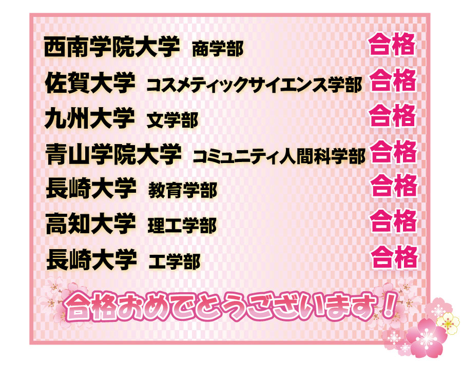 九大進学ゼミ長与校では、今年も大学受験において第一志望の夢をつかんだ生徒が出ました。