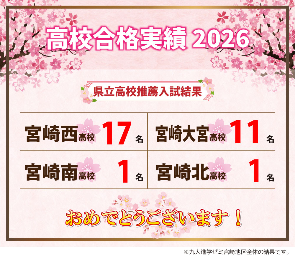 ホーム >  宮崎大宮高校前教室ブログ >  【速報】県立高校推薦入試結果!