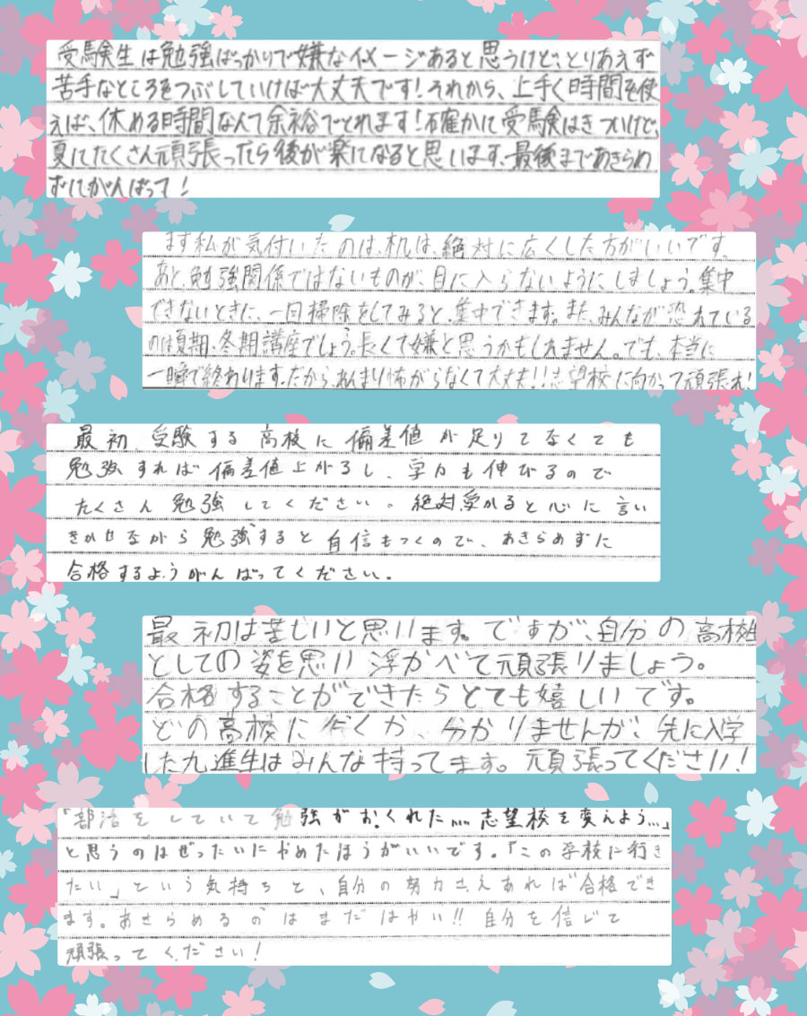 九進生全員が悔いのない受験ができることを心より願っております。