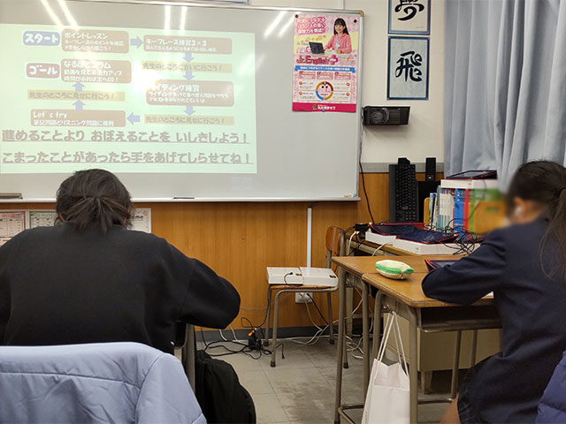さて、2月25日のブログでは高校準備コースの授業の様子をお届けしましたが、小学生の教室にもタブレットが……!
