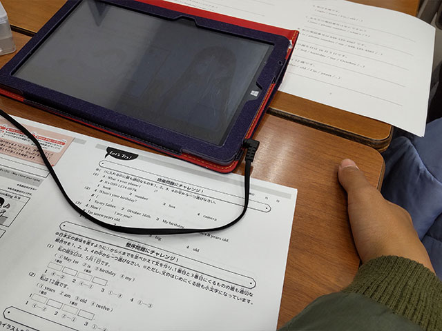 これまで小学生の英語の授業は、タッチペンを使った「Jr. English」という授業を行っていましたが、それがタブレットを使用する形となってパワーアップしました!