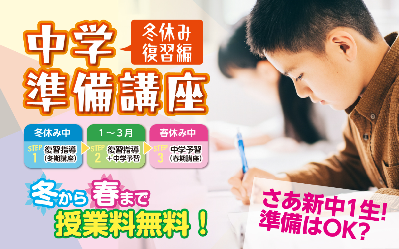 冬休みから春休みまでの3ステップ講座で、一緒に中学生活への準備を整えていきましょう!