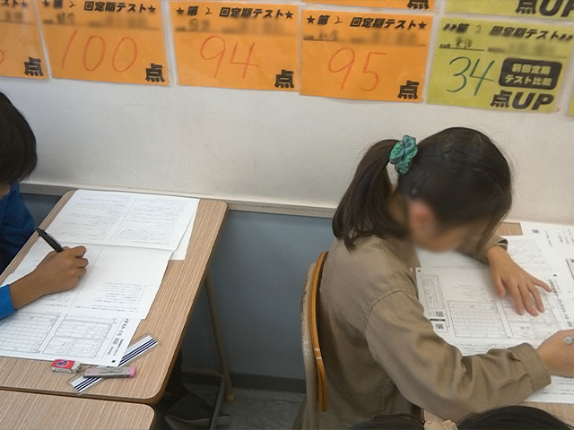 小3生・小4生・小5生は国語・算数の2科目、小6生は中学校を見据えて、英語も加えた3科目のテストを受験しました。