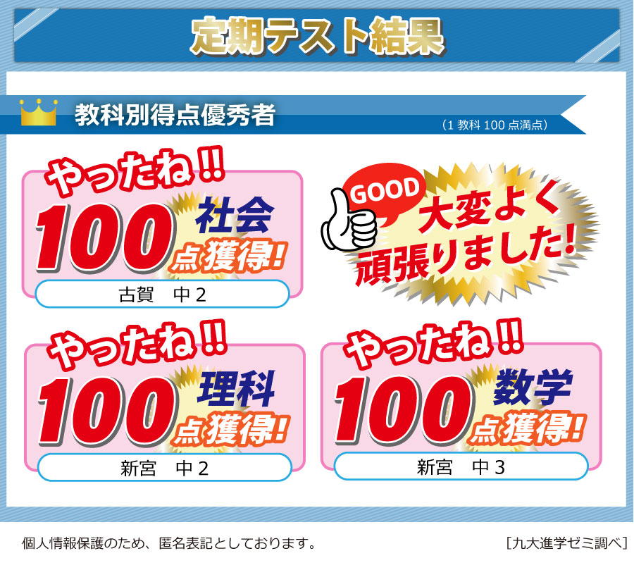 ホーム >  新宮校ブログ >  定期結果!~100点が出ました!~