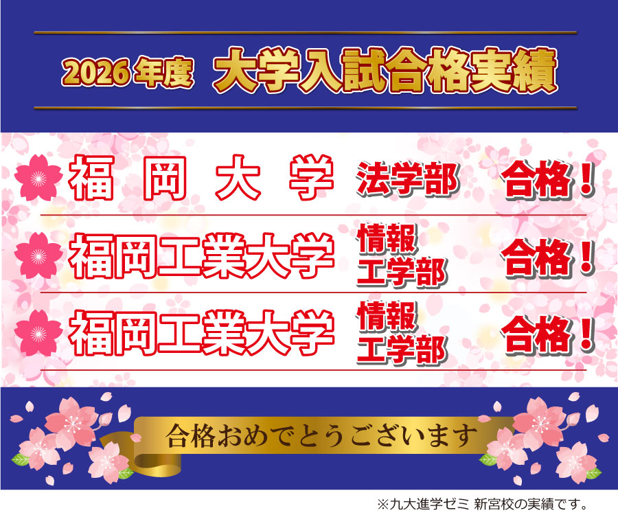 九大進学ゼミ 新宮校(Tel:092-692-1455) JR新宮中央駅直結 新宮ステーションビル2階