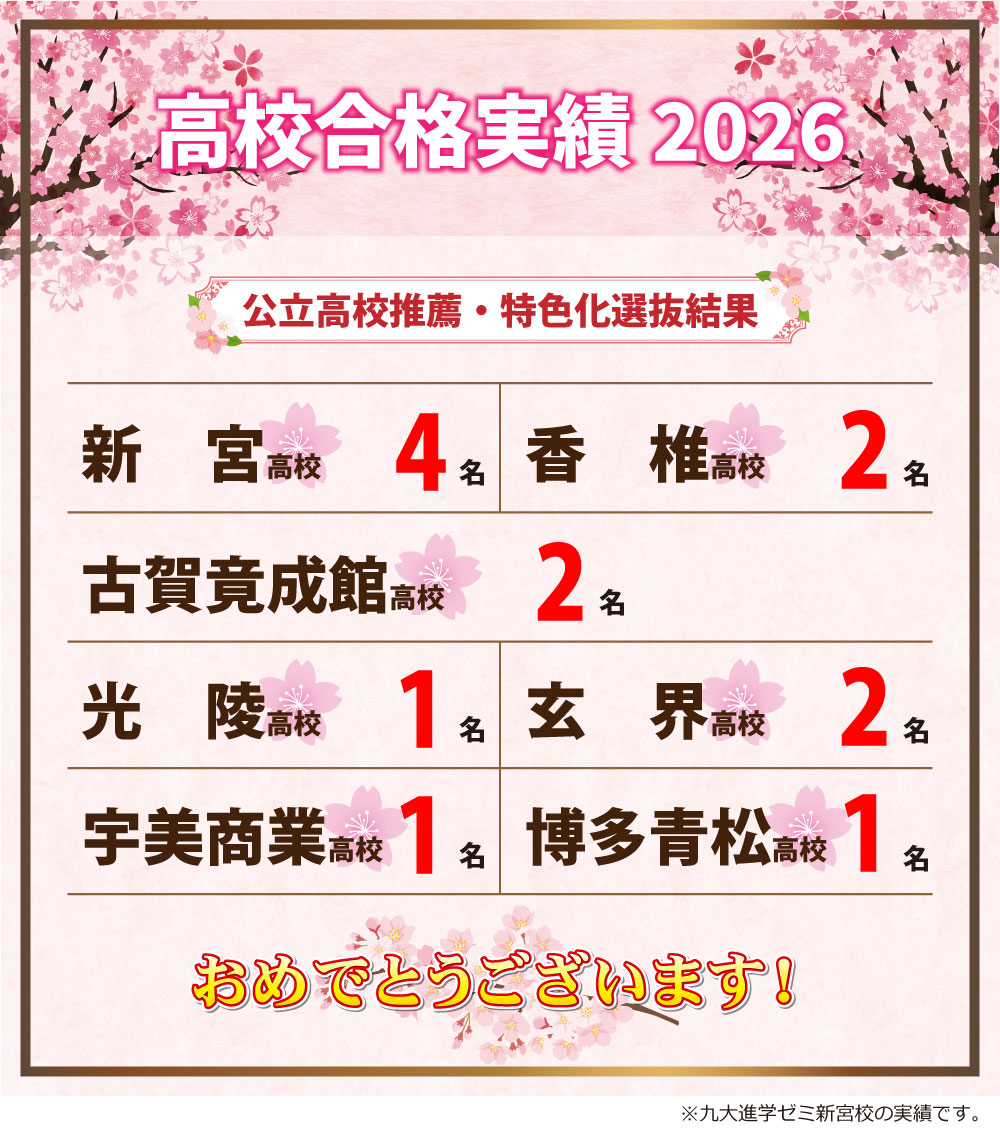 先日、2026年度公立高校推薦・特色化選抜結果が発表されました!