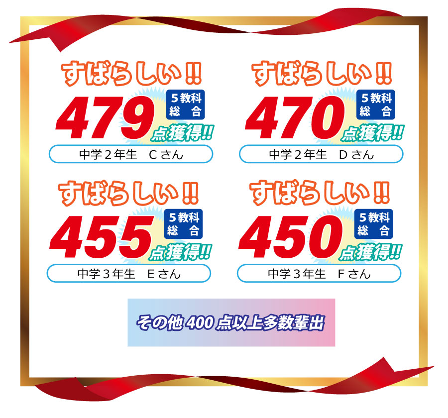 昨年の春期講座を受講した九進生たち、6月に実施された最初の定期テストで大幅上昇&高得点を数多く達成しました!