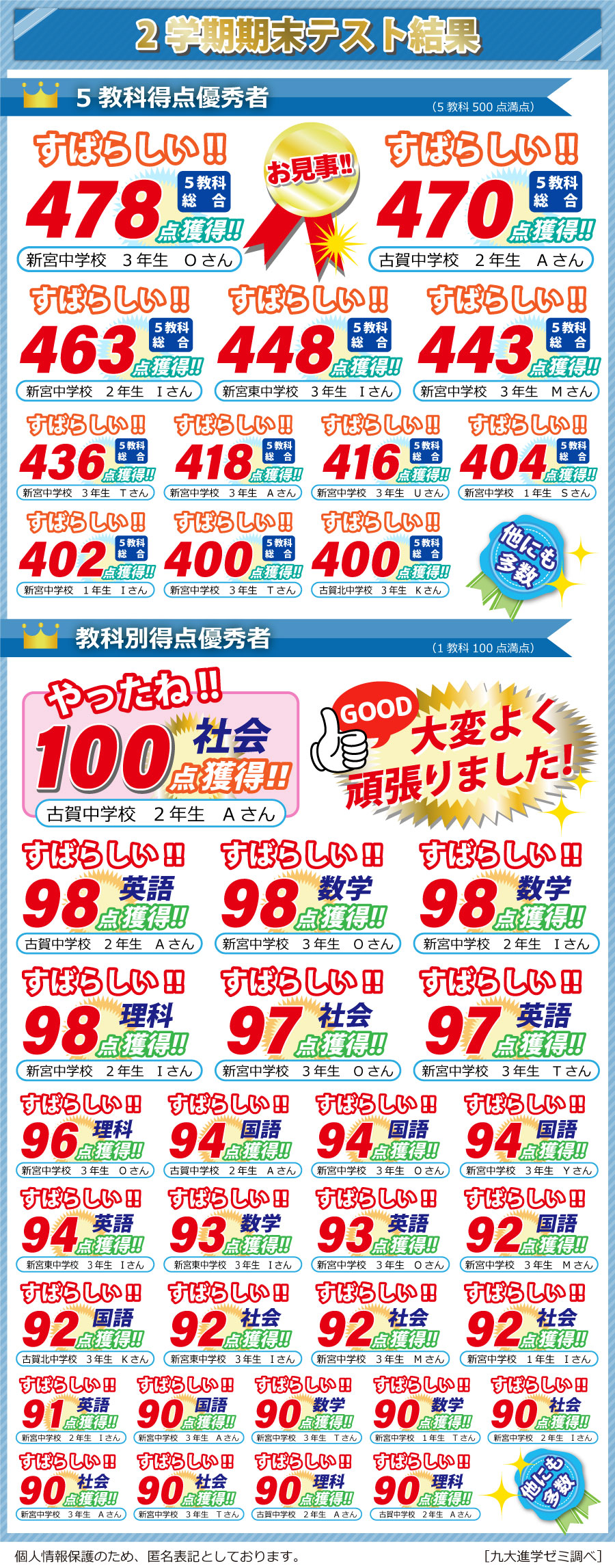ホーム >  新宮校 >  定期テスト結果