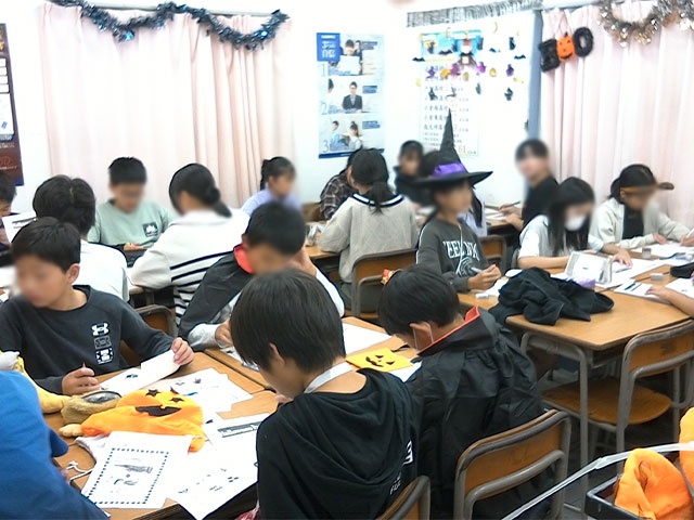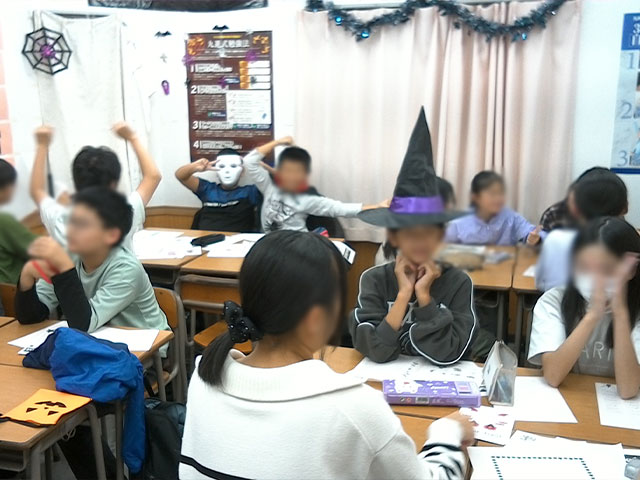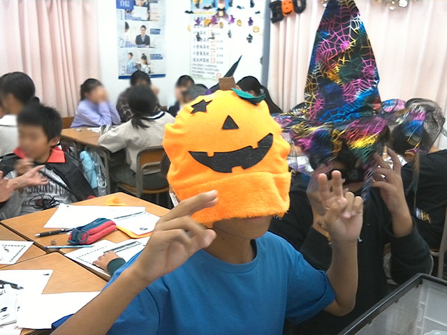 ハロウィンパーティーでは、ハロウィンに関係する英単語を学んだり・・・