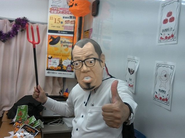 塾長の慶越先生。夜の授業もこの仮装で臨んだそうです!
