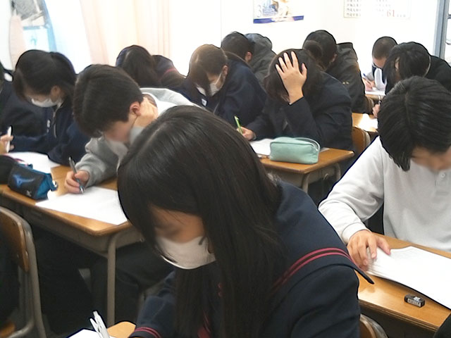 中3の冬期講座の目玉として、2日で合計約20時間みっちりと勉強漬けです。