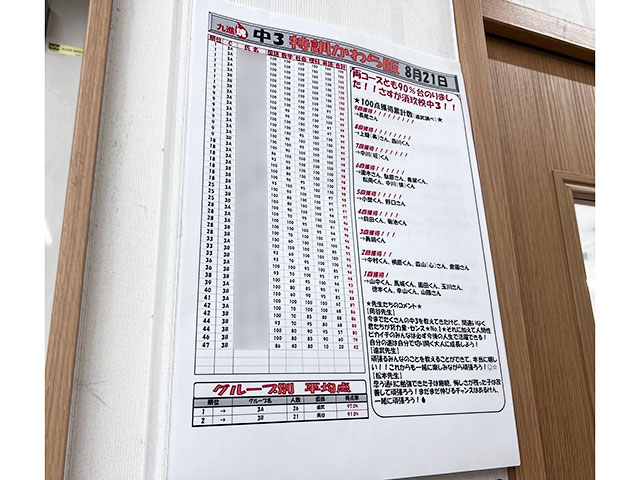 この写真は夏期講座最終日、最後の100トレの結果です!