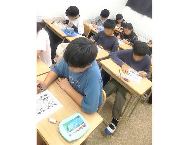 試験時間中、集中して様々な国語・算数の問題に挑んでいました。