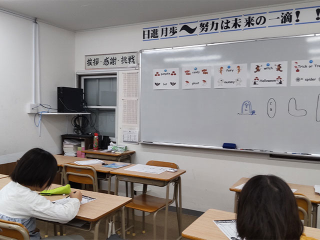 ハロウィンに関する英単語を書いたり、発音したりする中で、異国の文化に触れていきました。