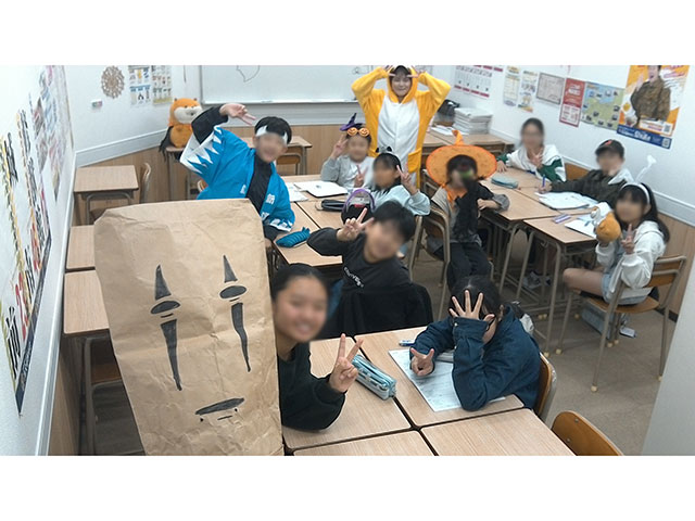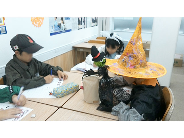 ハロウィンにまつわる英語を勉強した後は、みんなで英語のゲーム「3ヒントクイズ」を行いました。