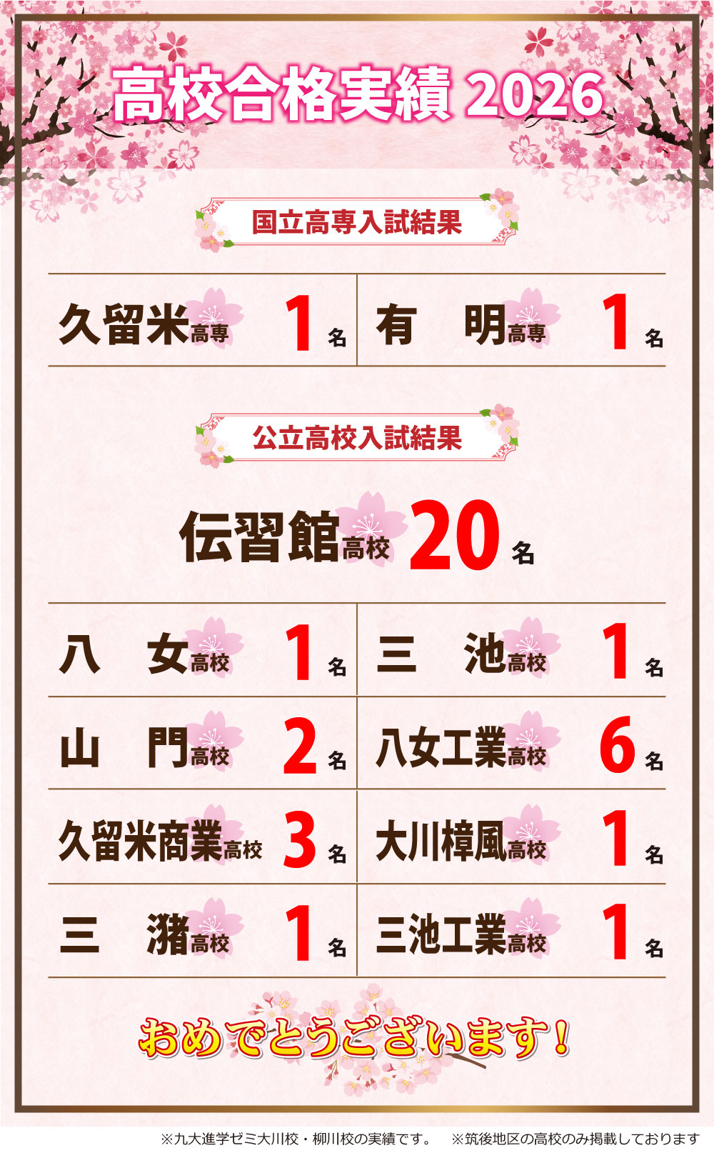 では、国立高専の推薦合格者もあわせて、2校舎の結果をご覧ください!