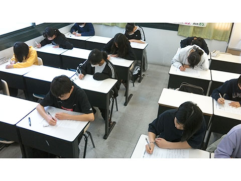 新中学1年生の春期講座最終日は、「まとめテスト」を実施しました。