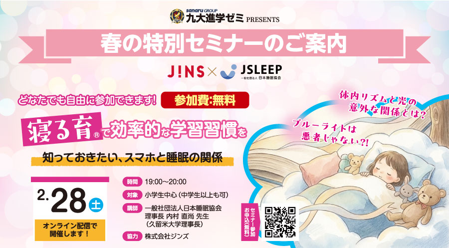 そこで、保護者の方もお子さんも一緒に生活リズムを見直し、 「睡眠の力」で学習パフォーマンスを高めてもらうため、 「🌙睡眠セミナー🌙」を実施します!