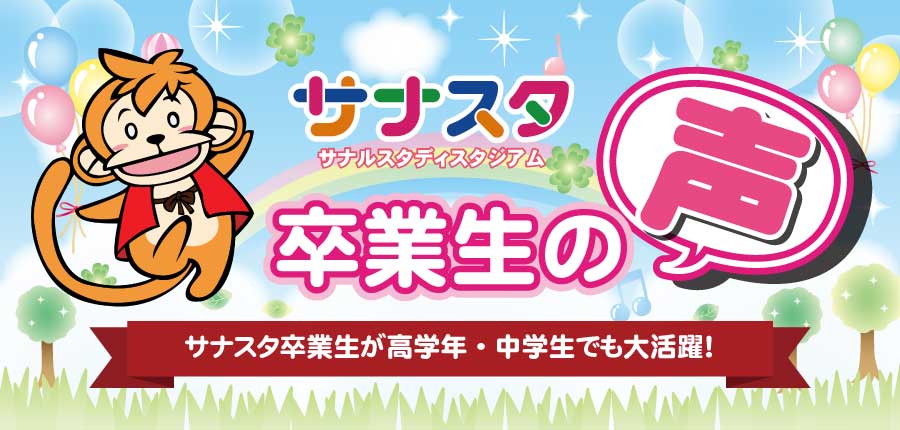 サナスタに通って、勉強する事の楽しさを知りました。英語やパズルなど幅広く学べたので、その後自分の興味のある事や得意な事を見つけられました。