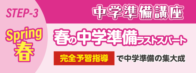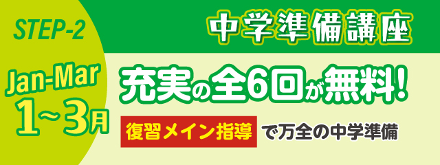 中学準備講座は、冬休み・1~3月・春休みの3講座制。各講座とも