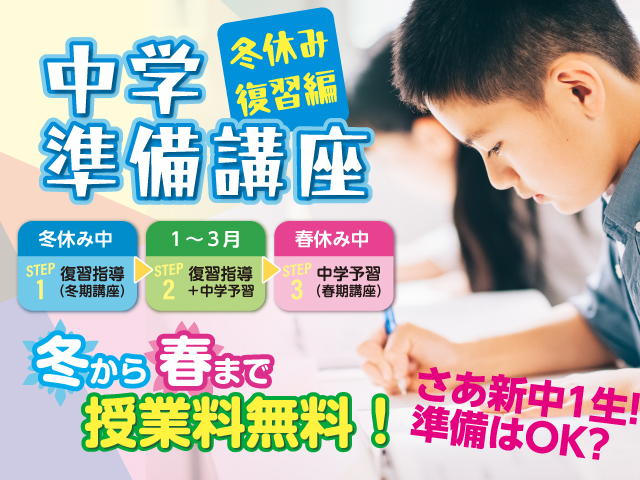 中1・中2生は年間で最も試験範囲の広い学年末テストに向けて、中3生は高校受験ラストスパートに向けて、5教科指導で総合的に学力を伸ばします。